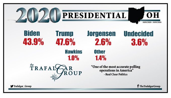 Quote:Thursday, October 29 Race/Topic (Click to Sort) Poll Results Spread General Election: Trump vs. Biden USA Today/Suffolk Biden 52, Trump 44 Biden +8 Florida: Trump vs. Biden NBC News/Marist Biden 51, Trump 47 Biden +4 Minnesota: Trump vs. Biden SurveyUSA Biden 47, Trump 42 Biden +5 Minnesota: Trump vs. Biden Trafalgar Group (R)* Biden 48, Trump 45 Biden +3 Minnesota Senate - Lewis vs. Smith SurveyUSA Smith 45, Lewis 42 Smith +3 President Trump Job Approval USA Today/Suffolk Approve 44, Disapprove 53 Disapprove +9 2020 Generic Congressional Vote USA Today/Suffolk Democrats 49, Republicans 39 Democrats +10 Direction of Country USA Today/Suffolk Right Direction 29, Wrong Track 58 Wrong Track +29 Wednesday, October 28 Race/Topic (Click to Sort) Poll Results Spread General Election: Trump vs. Biden Emerson Biden 50, Trump 45 Biden +5 General Election: Trump vs. Biden Rasmussen Reports Biden 47, Trump 48 Trump +1 General Election: Trump vs. Biden Economist/YouGov Biden 54, Trump 43 Biden +11 General Election: Trump vs. Biden CNN Biden 54, Trump 42 Biden +12 General Election: Trump vs. Biden Reuters/Ipsos Biden 52, Trump 42 Biden +10 General Election: Trump vs. Biden vs. Jorgensen vs. Hawkins IBD/TIPP Biden 50, Trump 45, Jorgensen 2, Hawkins 1 Biden +5 Wisconsin: Trump vs. Biden Marquette* Biden 48, Trump 43 Biden +5 Wisconsin: Trump vs. Biden Trafalgar Group (R)* Biden 48, Trump 47 Biden +1 Wisconsin: Trump vs. Biden ABC News/Wash Post* Biden 57, Trump 40 Biden +17 Florida: Trump vs. Biden Reuters/Ipsos Biden 49, Trump 47 Biden +2 Arizona: Trump vs. Biden Reuters/Ipsos Biden 48, Trump 46 Biden +2 Michigan: Trump vs. Biden NY Times/Siena* Biden 49, Trump 41 Biden +8 Michigan: Trump vs. Biden ABC News/Wash Post* Biden 51, Trump 44 Biden +7 Michigan: Trump vs. Biden MIRS/Mitchell Research* Biden 52, Trump 42 Biden +10 North Carolina: Trump vs. Biden Civitas/Harper (R)* Biden 47, Trump 46 Biden +1 South Carolina: Trump vs. Biden East Carolina U. Trump 51, Biden 44 Trump +7 Georgia: Trump vs. Biden Monmouth* Trump 46, Biden 50 Biden +4 Maine: Trump vs. Biden Colby College Biden 51, Trump 38 Biden +13 Maine CD2: Trump vs. Biden Colby College Trump 42, Biden 46 Biden +4 Arkansas: Trump vs. Biden The Arkansas Poll Trump 65, Biden 32 Trump +33 Virginia: Trump vs. Biden Christopher Newport Univ. Biden 53, Trump 41 Biden +12 Maine Senate - Collins vs. Gideon Colby College* Gideon 47, Collins 43 Gideon +4 Michigan Senate - James vs. Peters ABC News/Wash Post Peters 52, James 46 Peters +6 Michigan Senate - James vs. Peters NY Times/Siena* Peters 49, James 41 Peters +8 Michigan Senate - James vs. Peters Detroit News/WDIV-TV Peters 48, James 39 Peters +9 Michigan Senate - James vs. Peters MIRS/Mitchell Research* Peters 52, James 43 Peters +9 North Carolina Senate - Tillis vs. Cunningham Civitas/Harper (R)* Cunningham 46, Tillis 43 Cunningham +3 South Carolina Senate - Graham vs. Harrison East Carolina U. Graham 49, Harrison 46 Graham +3 Georgia Senate - Perdue vs. Ossoff Monmouth* Perdue 47, Ossoff 49 Ossoff +2 Georgia Senate Special Election - Open Primary Monmouth Warnock 41, Collins 19, Loeffler 22, Lieberman 4, Slowinski 2, Tarver 3 Warnock +19 Arizona Senate - McSally vs. Kelly Reuters/Ipsos Kelly 51, McSally 44 Kelly +7 Iowa Senate - Ernst vs. Greenfield WHO-TV 13 Greenfield 51, Ernst 45 Greenfield +6 Virginia Senate - Gade vs. Warner Christopher Newport Univ. Warner 57, Gade 37 Warner +20 Arkansas Senate - Cotton vs. Harrington The Arkansas Poll Cotton 75, Harrington 20 Cotton +55 Maine 2nd District - Crafts vs. Golden Colby College Golden 56, Crafts 31 Golden +25 President Trump Job Approval CNN Approve 42, Disapprove 56 Disapprove +14 President Trump Job Approval Reuters/Ipsos Approve 42, Disapprove 57 Disapprove +15 President Trump Job Approval Emerson Approve 45, Disapprove 51 Disapprove +6 President Trump Job Approval Rasmussen Reports Approve 52, Disapprove 47 Approve +5 President Trump Job Approval Economist/YouGov Approve 42, Disapprove 56 Disapprove +14 Congressional Job Approval Economist/YouGov Approve 15, Disapprove 68 Disapprove +53 2020 Generic Congressional Vote Economist/YouGov Democrats 52, Republicans 42 Democrats +10 2020 Generic Congressional Vote CNN Democrats 54, Republicans 42 Democrats +12 Direction of Country Economist/YouGov Right Direction 30, Wrong Track 65 Wrong Track +35 Direction of Country Reuters/Ipsos Right Direction 26, Wrong Track 64 Wrong Track +38