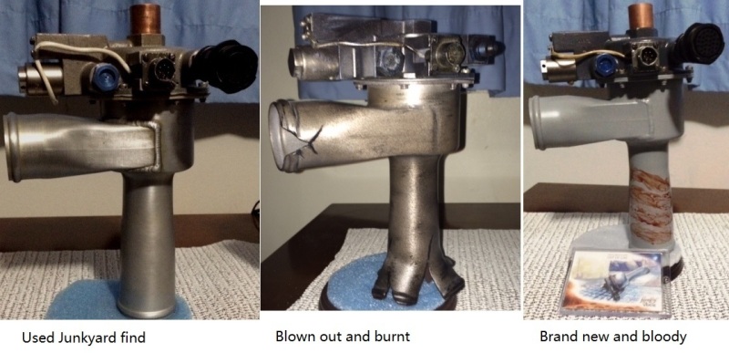 I took the 3 Bell helicopter mixing valves and made 3 different versions of the Catalyzer. The junk yard find, the burnt exploded one, and the one Mal carried in his bloody hand to repair the ship.