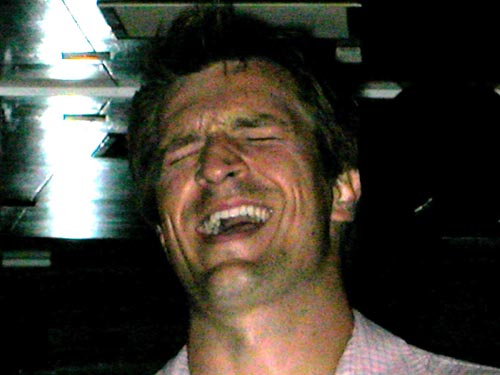 Sorry, the quality on this one sucks. It was too dark and I was too far away, but I still managed to get the shot, mostly. :) Nathan was talking to Danny Strong and Nicholas Brendon at the time, so one of them must be really funny...