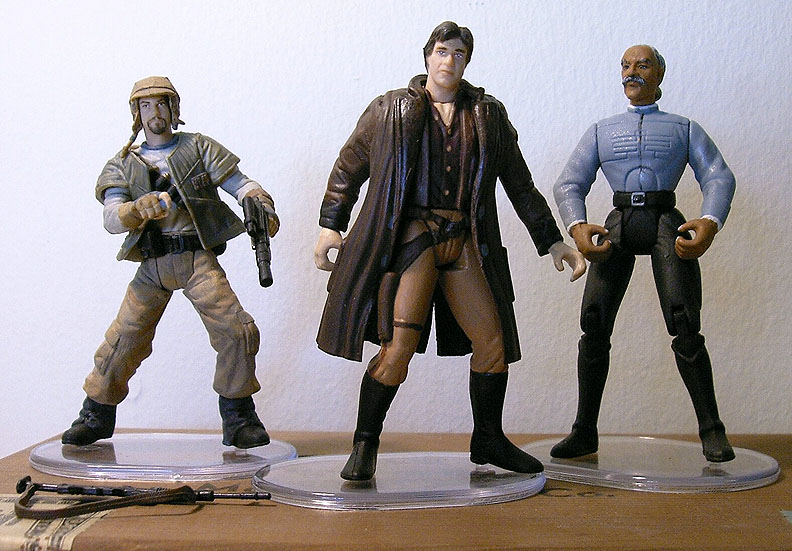 Well, here's my first set of our BDH's "action figures" that I modified from a (Force 9?) and a couple of Star Wars figures. I remodled Jayne's hat a bit, cut back Han Solo's coat to Mal's length, cut back the long ponytail and mustache for Book and repainted everbody's costuming, skin and hair tone. Not perfect, but it was fun. Now I have to fine models for the other figures!
