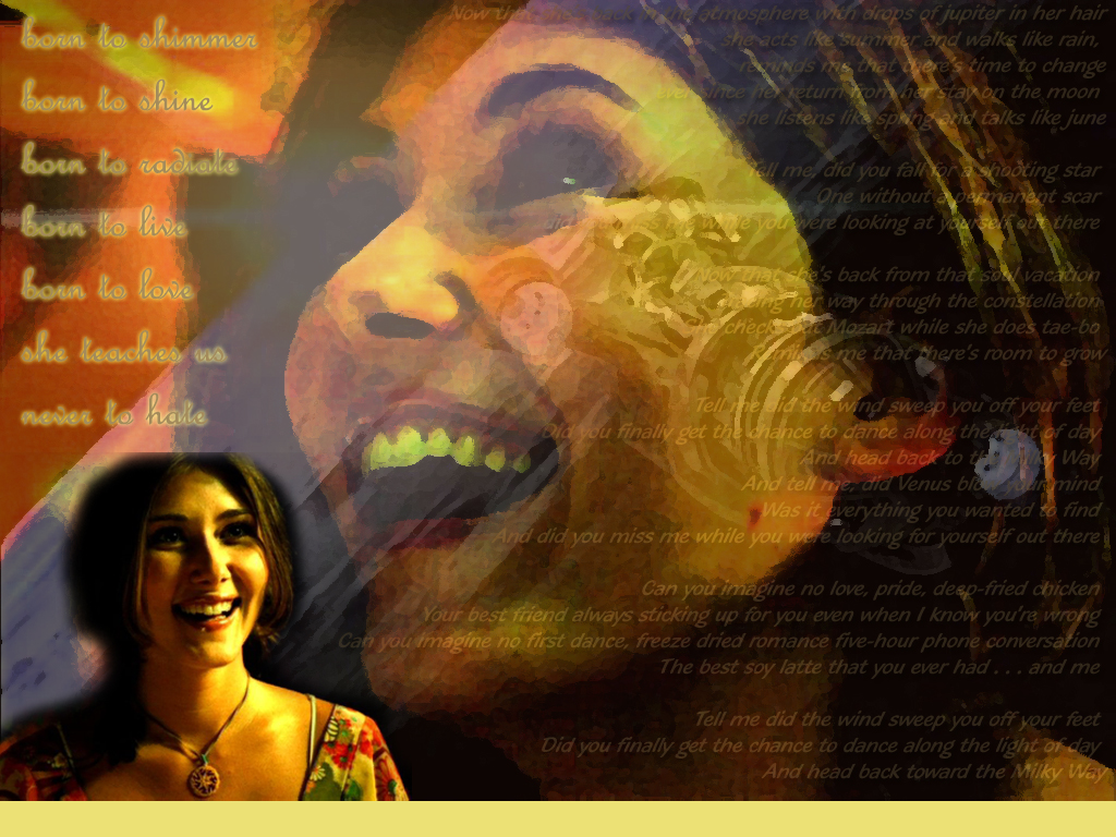 I wanted Kaylee brightness. I'm not sure what I did worked, but I think it's pretty ok. The large lyrics are from "Shimmer" and the smaller ones are "Drops of Jupiter". Would it look better without the small Kaylee shot on the left? Lemme know.