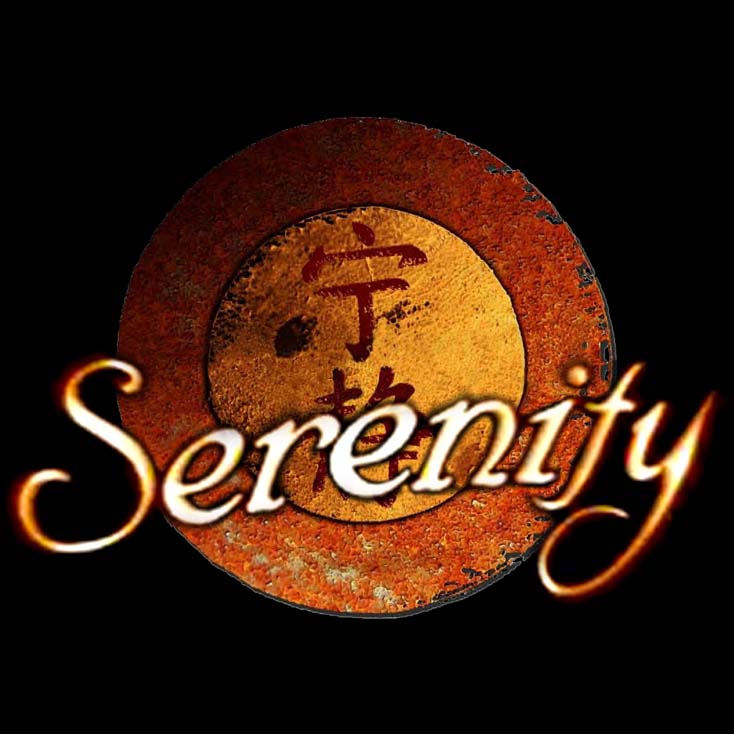 Early "Firefly" style "Serenity" across the current "gong" logo.