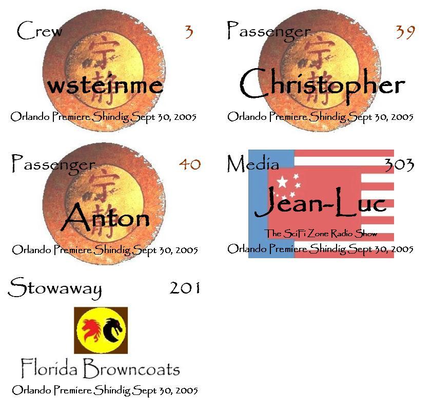With the Florida Browncoats big Orlando Premiere Shindig just a couple days away now, here is a sample sheet of our badges that I have created. A big thanks to Hasufel2 for the insperation. And I think I was able to avoid the black ink issue very nicely.