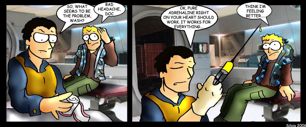 I love the way they use adrenaline happily in "Out of gas" hahaha. Next one, Jayne must fight an intruder on the cargo bay ;-)