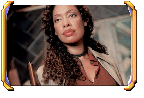 Her bodyguard and fine robes give away her importance. Jayne quickly